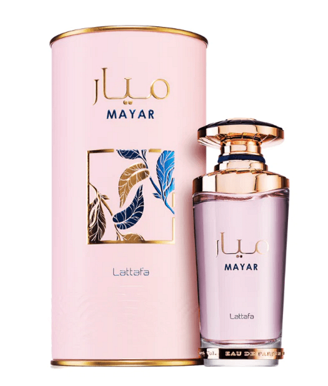 Mayar: Деликатният личи, божур и бели цветя са оживени с нотка на най-бездънния пустинен пясък за лек, ефирен, летен аромат. Подобно на ансамбъла от музиканти в симфоничен оркестър, Mayar от Lattafa се състои от три части: горните нотки са съставени от леки цитрусови и плодови нотки; сърцето е съставено от пищни бели цветя и чувствен мускус; и основата е съставена от арабски уд,